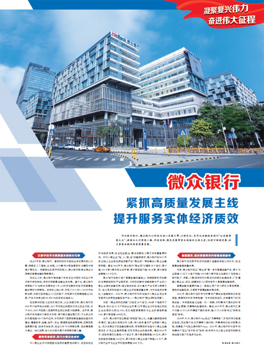微众银行依托数字科技手段提升金融服务能力和水平,促进普惠金融高质量发展。