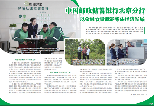 中国邮政储蓄银行北京分行(简称“邮储银行北京分行”)坚持稳中求进工作总基调,完整、准确、全面贯彻新发展理念,服务融入首都新发展格局,为实体经济发展注入新动能。自2007年成立以来,邮储银行北京分行坚守金融服务实体经济主责主业和大型零售商业银行战略定位,坚持稳中求进,持续深化转型,强化风险防控,在北京城市现代化建设中贡献力量。