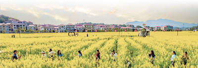 游客在江西芦溪县稻田公园游玩。 |