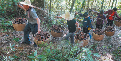 武平县下坝乡福兴村村民在转运紫灵芝。 |