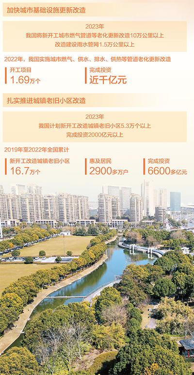 聚焦居民所思所想所盼所急,各地大力实施城市更新行动,让人民群众在城市生活得更方便、更舒心、更美好。2022年,我国实施城市燃气、供水、排水、供热等管道老化更新改造,开工项目1.69万个、完成投资近千亿元。2019年至2022年,全国累计新开工改造城镇老旧小区16.7万个,惠及居民2900多万户,完成投资6600多亿元。