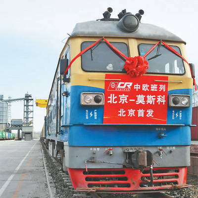 3月16日,从北京出发的首列中欧班列满载建材、家电等货物,从平谷地方铁路马坊站缓缓开出,驶向莫斯科。 |