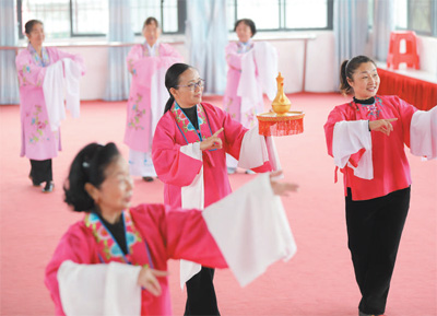 湖南道县老年大学,学员们正在学习表演京剧。 何红福摄(影像中国)