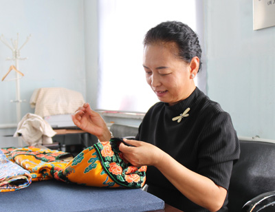 “这叫打水线,既留出一条直线,又让布料上的浆水微微融化,便于黏合。”将布料翻到水线上,用熨斗熨实。如此,反复两到三次,缝上布条,就是一道圆滚滚的滚边,“这样包边厚实有质感,也是考虑到东北风大,能起到一定的防风作用。”陈玉秋说。