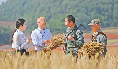 云南省师宗县纪委监委紧盯乡村振兴领域突出问题,下沉监督力量,大兴调查研究,组织纪检监察干部到田间地头与群众拉家常,听民声,用实际行动坚持为群众办实事、解难题。图为师宗县纪检监察干部在漾月街道洽足村和群众交流,了解相关情况。