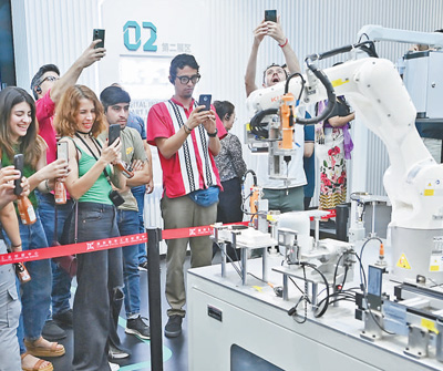 拉美代表参观襄阳数字工业创新中心时,被智能化的工业设备所吸引。 |