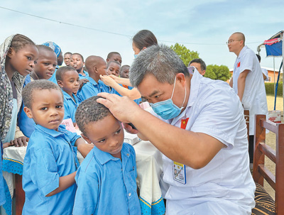 多年来,中国协助非洲多国防控疟疾、血吸虫病、黄热病等,与坦桑尼亚、科摩罗等国家和国际组织共同实施公共卫生合作项目。2014年,西非各国抗击埃博拉时,中国派出上千名临床和公共卫生专家逆行出征。新冠疫情发生后,中国向17个非洲国家派出抗疫医疗专家组或短期抗疫医疗队,并指导长期派驻在40多个非洲国家的援外医疗队,共同构筑守护当地民众生命健康的屏障。