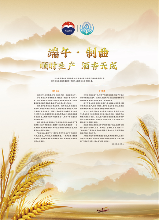 端午也是冬小麦成熟的时节,新熟的小麦为制曲提供了最佳原料,制曲人将新收的小麦磨碎、制成曲块、高温发酵……这是茅台作为大曲酱香型白酒一直坚守的古法酿造技艺,蕴含着茅台对品质的坚持。