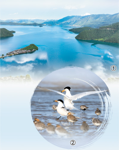 图①:四川、云南两省协同推进泸沽湖保护立法工作,推动形成生态治理合力。图为泸沽湖美景。 |