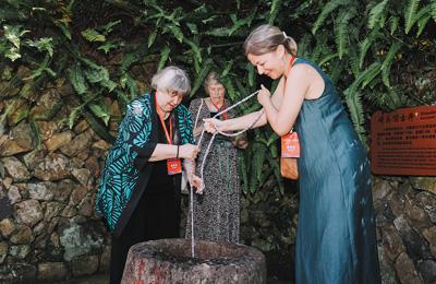 走过枝繁叶茂的千年柳杉,穿过青石铺就的鼓岭老街,在始建于1914年的万国公益社,大家围坐桌前共叙鼓岭情缘,一幅穿越时光的友谊画卷缓缓打开。