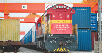 自我国提出共建“一带一路”倡议以来,中欧班列作为“丝路”上的“钢铁驼队”驰而不息。10年间,中欧班列联通我国境内108个城市,通达欧洲25个国家。图为从德国杜伊斯堡返回西安国际港站的X8008次中欧班列。