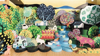 余东农民画文创产品设计“模拟乡村拼图”,作者龚孜蔚。 |