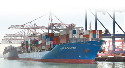 8月19日,满载货物的中远海运集装箱船停靠在南非德班港。 |