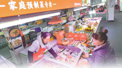 消费者在湖南浏阳一家生鲜市场挑选预制菜。 |
