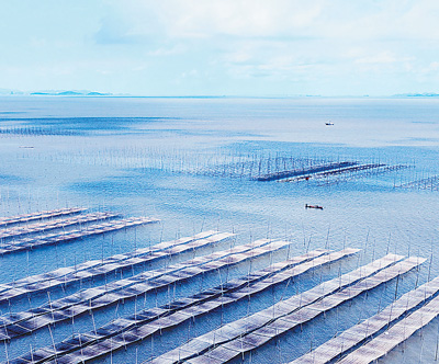 9月12日,在浙江省台州市路桥区金清镇海峰村,村民在海面进行紫菜养殖作业。金清镇积极发展特色富民产业,目前紫菜养殖规模已有5000多亩,有效带动了当地群众致富。