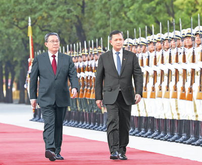 李强指出,中方坚定支持柬方维护国家主权、安全、发展利益,探索符合自身国情的发展道路。中方愿同柬方进一步加强发展战略对接,充分发挥两国政府间协调委员会作用,抓好中柬“钻石六边”合作架构、构建新时代中柬命运共同体行动计划的落实落地,推进“工业发展走廊”和“鱼米走廊”建设,推动工业、农业、经贸等领域合作提质升级,取得更多务实成果。双方要继续办好“中柬友好年”系列活动,持续推进卫生、教育、文旅等人文交流合作。中方愿同柬方在地区和国际事务中继续密切配合、相互支持,推动澜湄合作不断走深走实,常态化开展打击网赌电诈等非传统安全领域合作,建设更为紧密的澜湄国家命运共同体。