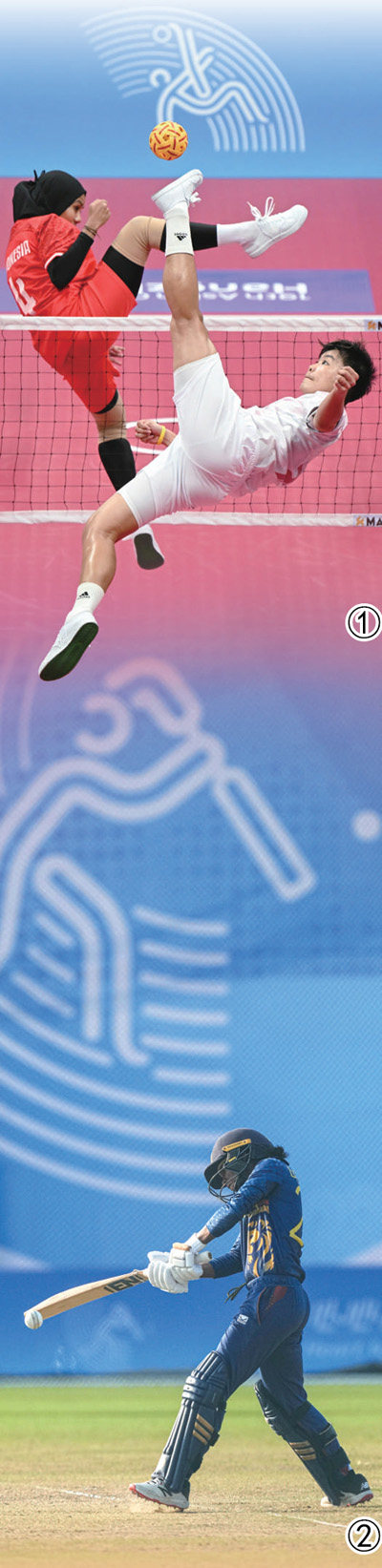亚洲特色项目拥有广泛的群众基础,也具有很强的观赏性。在杭州亚运会藤球赛场,双方选手隔网而立,用脚腕、膝关节等部位击球过网,时而迅猛出击,时而凌空倒钩。“藤球在马来西亚很受欢迎,很古老也很有趣,参与的人们总是充满激情。”马来西亚藤球队选手本·阿达姆·法尔汉说。