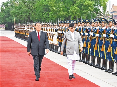 会谈前,李强在人民大会堂东门外广场为普拉昌达举行欢迎仪式。