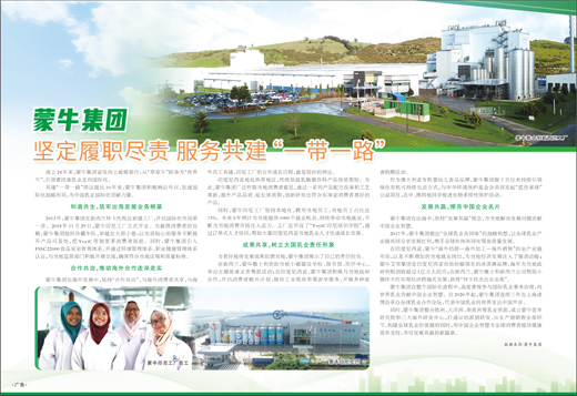 在印度尼西亚,蒙牛“海外奶源—海外加工—海外销售”的全产业链布局,以及不断增加的当地就业岗位,为当地经济发展注入了强劲动能;蒙牛艾雪集团是印度尼西亚市场份额领先的冰淇淋品牌,每年为当地政府利税创收超过1亿元人民币;在新西兰,蒙牛雅士利新西兰公司帮助小镇怀卡托实现经济跨越式发展,获得“怀卡托杰出企业奖”。