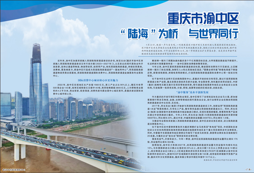近年来,渝中区加速深度融入西部陆海新通道建设的步伐,制定出台《重庆市渝中区深度融入西部陆海新通道建设五年行动方案(2023—2027年)》,立足发达的现代服务业和开放资源,坚持以通道带物流、物流带经贸、经贸带产业,依托西部陆海新通道,持续在贸易端、消费端、服务端发力,把渝中区打造成为西部陆海新通道的“一基地两中心”,即西部陆海新通道物流贸易总部基地、西部陆海新通道国际消费中心、西部陆海新通道金融服务专业服务中心。