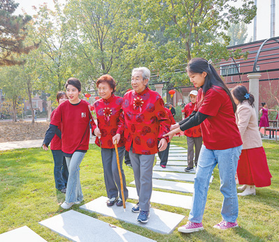 近年来,各地各部门高度重视养老服务工作,把政策落实到位,健全养老服务体系,优化服务功能和运营管理,惠及更多老年人。10月23日是重阳节,中国传媒大学举行“躬耕教坛满庭芳,初心如磐勇担当”重阳节庆祝活动暨主题音乐会,为退休老教师送上节日祝福。图为学生志愿者引导退休老教师夫妇进入会场。