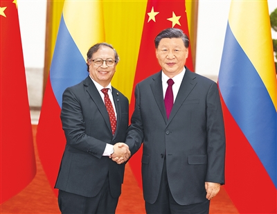 佩特罗表示,很高兴时隔多年再次访华,今天的中国和世界已经发生了巨大变化,中国革命和建设的理论与实践具有重要启示意义。哥方高度重视习近平主席提出的“一带一路”倡议。哥中建立战略伙伴关系之后,哥方愿将自身区位优势和发展战略同“一带一路”倡议对接,加强基础设施、清洁能源等领域合作,欢迎中国企业赴哥投资,推动双边贸易关系更加平衡发展,这有助于帮助哥伦比亚推进国内和平进程,实现人民渴望的和平稳定与就业增长,也将增强地区和世界的互联互通。哥方愿同中方就巴以局势等问题保持沟通,推动尽快找到止战降温的解决方案。哥方欢迎习近平主席提出的全球发展倡议、全球安全倡议、全球文明倡议,愿同中方在多边机制内加强沟通协作。哥方支持拉中论坛建设,愿利用2025年担任拉共体轮值主席国契机,积极推动拉中关系不断发展。
