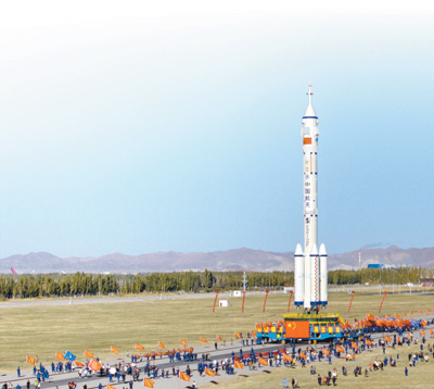 10月19日,神舟十七号载人飞船与长征二号F遥十七运载火箭组合体正在转运途中。 |