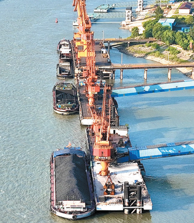 长江航道安徽省芜湖市繁昌区新港段,码头上装卸作业有序进行。 钱 鸣摄(影像中国)
