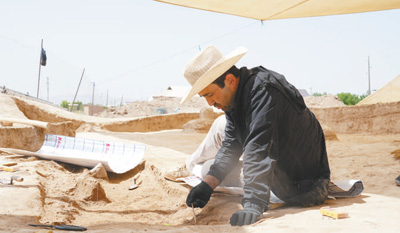 5月,比龙在位于乌兹别克斯坦南部城市拜松的拉巴特遗址进行考古挖掘。 |