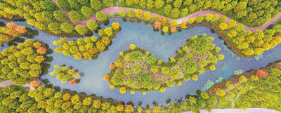 日前,俯瞰江苏省南通市通州区洲际梦幻岛,草木茂盛,景色秀丽。近年来,通州区推进生态文明建设,加强长江沿岸湿地保护,建设“江心秀岛、生态绿洲”。