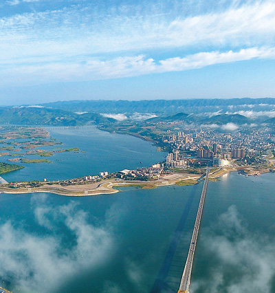 湖北省十堰市郧阳区,郧阳湖国家湿地公园景色宜人。该公园为南水北调中线工程水源涵养地。 兰昌林摄(人民视觉)