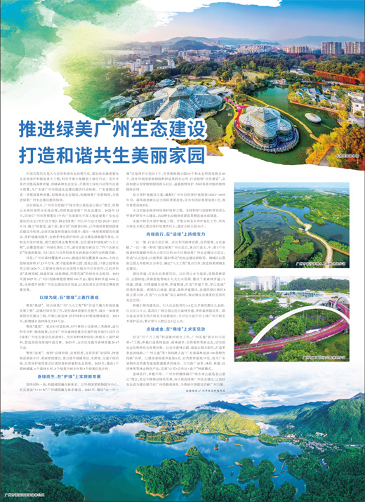 逐绿前行,步履不停。广州市将继续践行“绿水青山就是金山银山”理念,坚定不移推动绿色发展,深入推进绿美广州生态建设,让良好生态成为建设现代化广州的最美底色,为美丽中国建设贡献广州力量。