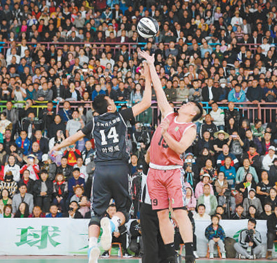 在贵州省台江县举行的2023全国和美乡村篮球大赛(“村BA”)总决赛现场。以“村BA”为代表的乡村体育赛事广受关注。 |