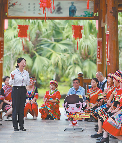广西壮族自治区桂林市恭城瑶族自治县,党员在“桂姐姐”课堂上进行宣讲。近年来,当地依托新时代文明实践中心,组织“桂姐姐”宣讲队,传播党建、法律和妇女儿童权益保障等知识。各地新时代文明实践中心成为精神文明建设的重要阵地,在加强思想政治引领、培育社会文明风尚等方面发挥着重要作用。 |