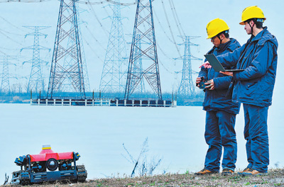 近年来,国网浙江绍兴供电公司通过不断探索智能装备与传统电网业务融合,提升作业效率,更好保障当地经济社会发展用电。图为技术人员操控机器人检查供电设备。