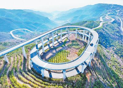 山西加强交通运输基础设施建设,在重大工程推进、农村公路建设等方面持续发力,打造互联互通、高效便捷的路网体系。据统计,2023年,山西新增公路通车里程1076.2公里,年末公路通车里程14.7万公里,其中高速公路6187.6公里。根据山西交通建设规划目标,到2027年,全省高速公路通车里程将突破7000公里。图为太原市的天龙山公路蜿蜒在群山之间。
