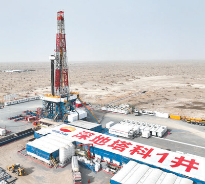 在新疆维吾尔自治区,位于塔克拉玛干沙漠的深地塔科1井(无人机照片)。 |