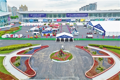 第八届中国—俄罗斯博览会将于五月十六日至二十一日在黑龙江省哈尔滨市举行,目前各项准备工作正在有序进行。图为五月十四日拍摄的博览会布展现场(无人机照片)。