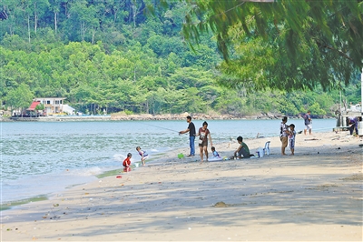 泰国尖竹汶府的一处海滩上,游客们在垂钓、休闲。 |