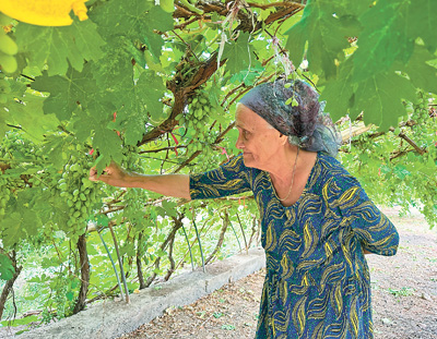 海力其汗·玉素甫正在查看葡萄生长情况。 |