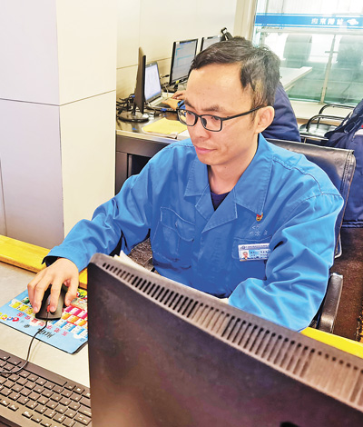 生产线的高效运行离不开“中枢大脑”的操控。在车间二层的轧机主控室里,23块显示屏一刻不停呈现生产线上的关键点位实况,电脑系统则同时监测温度、板形、轧制负荷等几十项轧钢关键参数。作为轧钢操作的行家里手,钢轧作业部精轧操作工荣彦明(见图,本报记者王洲摄)有一手“眼脑手合一”的绝活:抬头看监控屏幕敏锐观察带钢轧制状态,脑中快速思考产生原因、调整方法,手指迅速操作调整按钮,整个过程在0.5秒内完成。