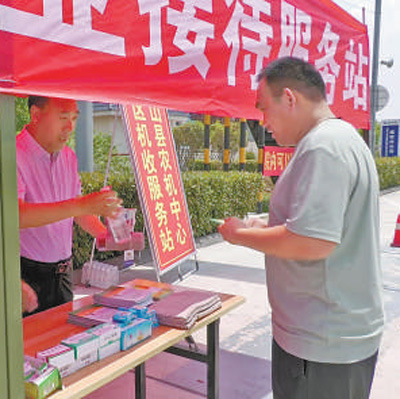 “欢迎来到确山。”服务站里,确山县农机中心工作人员刘东升热情地递上“三夏”礼包:毛巾、矿泉水、方便面,还有防暑降温的日常用品。