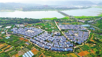 6月26日,湖北省十堰市郧阳区柳陂镇郧阳湖畔南水北调移民安置小区,呈现一片生态宜居美景。