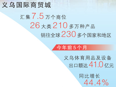 “近年来,国际商贸城内经营体育用品的店铺不断增加,义乌制造的体育用品在全球市场中份额不断增长,义乌市场未来会有更广阔的发展空间。”王强信心满满,“我们有信心通过不断创新,让义乌好商品卖向全球。”