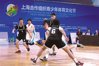 2024上海合作组织青少年体育文化节上,中国和塔吉克斯坦两国球员进行男子三人制篮球比赛。 |