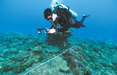 自然资源部第三海洋研究所的科技工作者在开展珊瑚礁水下调查。 |