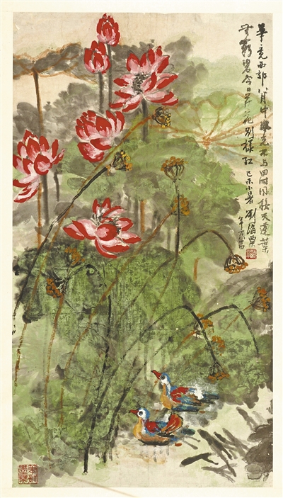中国画《红荷翠羽》,作者刘海粟,中国美术馆藏。