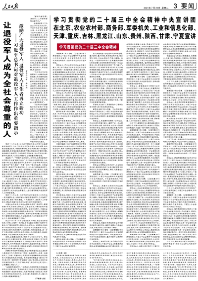 学习贯彻党的二十届三中全会精神中央宣讲团在北京、农业农村部、商务部、军委机关、工业和信息化部、天津、重庆、吉林、黑龙江、山东、贵州、陕西、甘肃、宁夏宣讲(学习贯彻党的二十届三中全会精神)