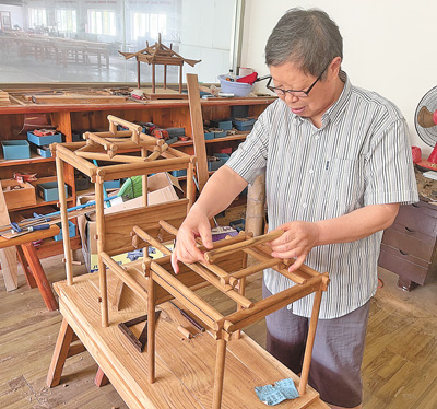 榫卯是中国古建筑中比较常见的一种连接方式。“动手设计、制作榫卯是技术活,一点不能马虎。”陆耀祖边说话边摆弄着榫卯,在他的巧手之下,构件紧密贴合,稳定且牢固。