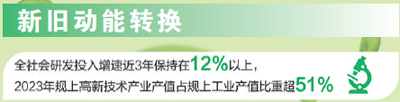 深化新旧动能转换。统筹优化传统产业,壮大新兴产业,布局未来产业,全社会研发投入增速近3年保持在12%以上,2023年规上高新技术产业产值占规上工业产值比重超51%,经营主体达1474万家。